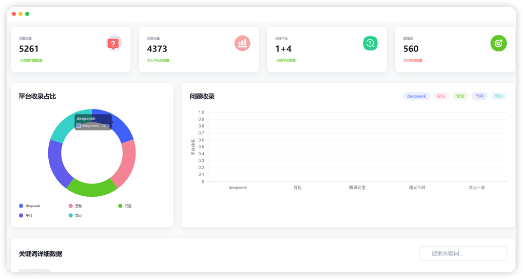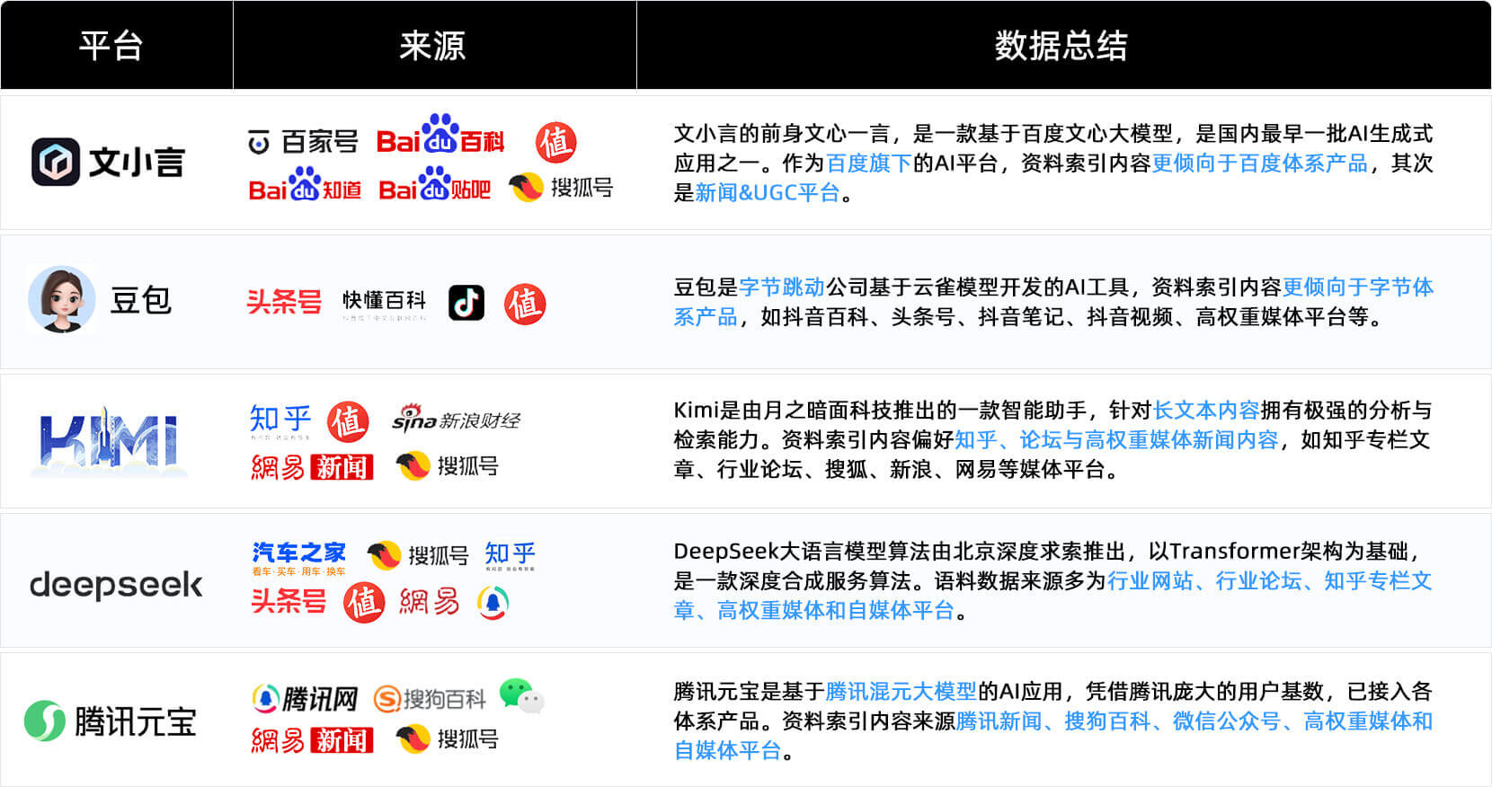 5大主流AI搜索均有收錄,Deepseek、豆包、文心一言、通義千問、元寶、其他等,擴大品牌影響力。